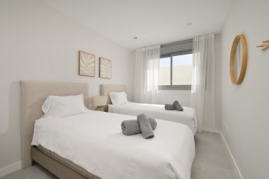 Modern and bright 3-bedroom apartment in the exclusive Vitta Nature complex in Mijas. Ideal for families or friends seeking comfort, peace, and access to pools, spa, gym, and paddle courts. Close to beaches, golf, family attractions like Aquamijas, Bioparkand and cities like Marbella and Málaga. Great for day trips to Ronda, Setenil, and Caminito del Rey.